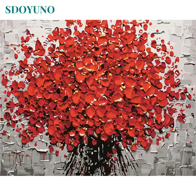 Sdoyuno Quadro Flores Vermelhas Pintura Diy Por Numeros Acrilico Arte Pintura Da Lona Retrato Da Arte Da Parede Moderna Casa Arte Pintadas A Mao Pintura Por Numero Aliexpress
