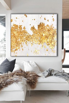 Quadro Moderno Quadro Dipinto A Mano Quadri Moderni Su Tela Con Foglia Oro Ebay