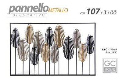 Pannello Design In Metallo Da Parete Con Foglie Cm 146x11x67h Collyshop
