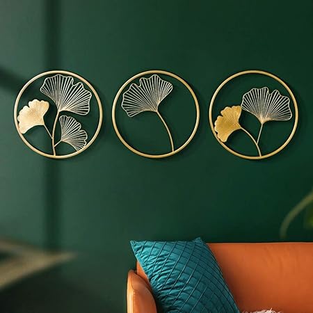 Quadro In Metallo 3d Sculture Tondo Wall Art Scultura In Metallo Oro Ginkgo Foglie Progettato For Pareti Della Parete Del Salone Decorativi Appesi Sculpture Colore Oro Dimensione 45 5x45 5cm