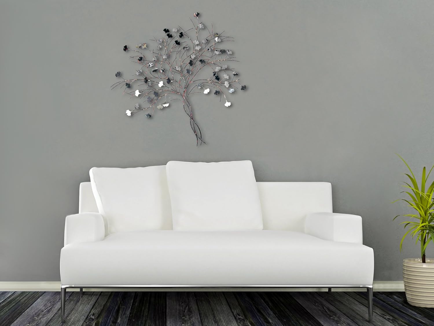 Quadro Pannello Decorativo Metallo Colore Argento Foglie 8025569776915 Da Elle Stock Srl Ellestock