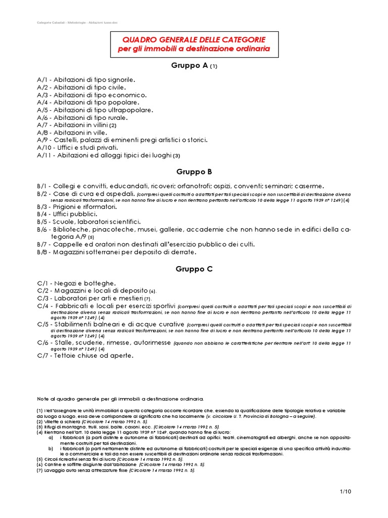 Q U A D R O G E N E R A L E D E L L E C A T E G O R I E P E R G L I I M M O B I L I A D E S T I N A Z I O N E O R D I N A R I A