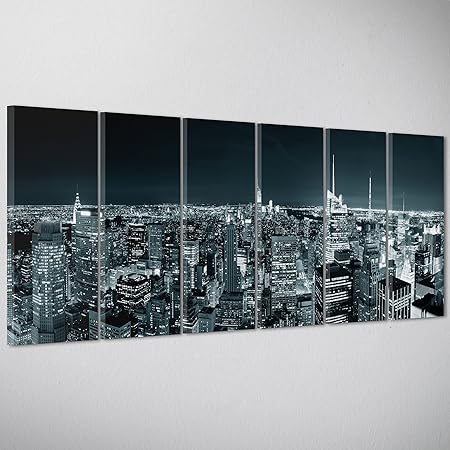 Quadro Moderno Gigante Su Tela Canvas Intelaiato Citta New York Skyline America Usa Grattacieli 6 Pannelli Arredamento Casa Bar 200x70cm Cod 003 Amazon It Casa E Cucina
