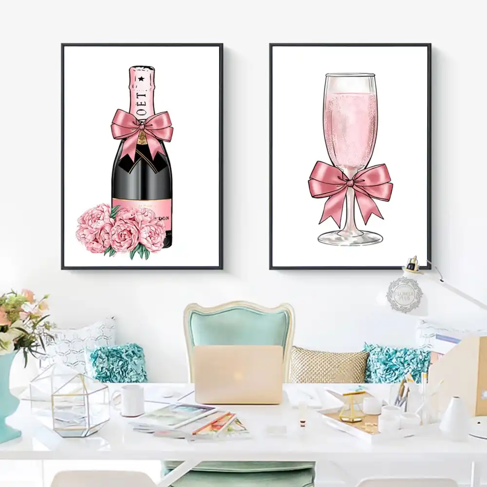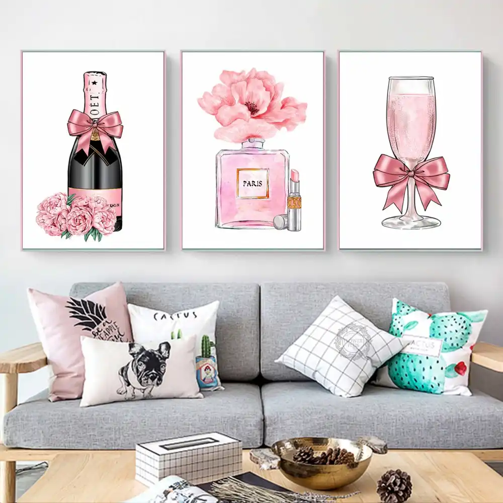 Abstract Champagne Gin Rose Canvas Painting Bottle Nordic Wall Pop Art Poster Print Fashion Decorative Decor Quadro Cuadros Painting Calligraphy Aliexpress