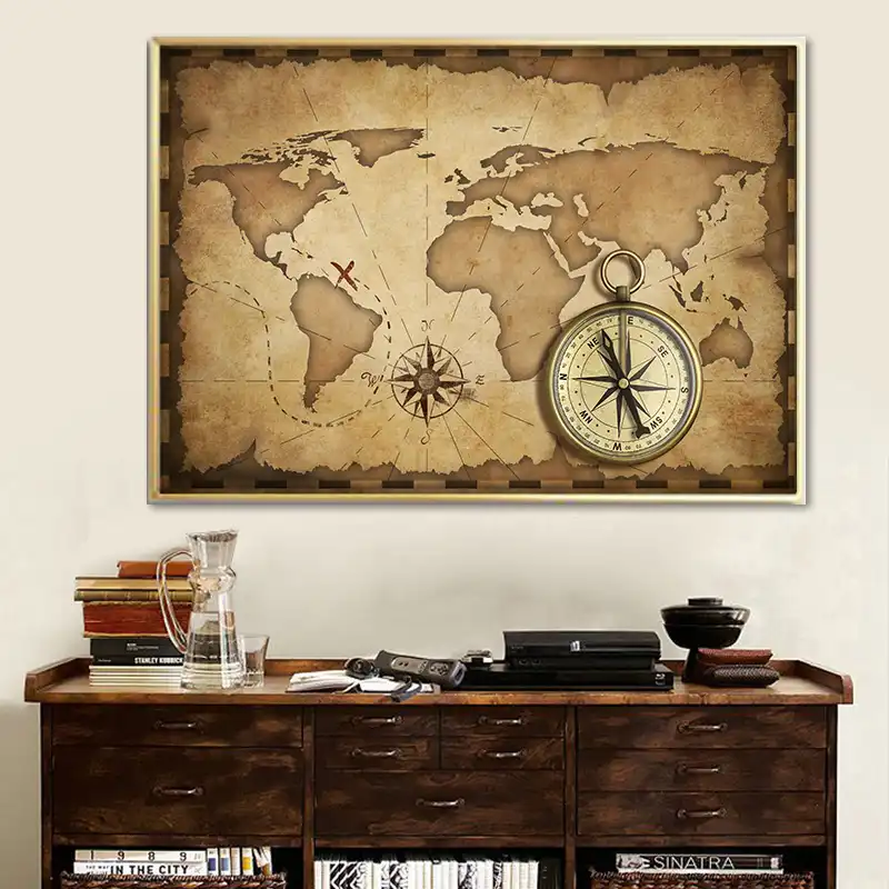 Grande Mapa Nautico Do Vintage E Bussola Mapa Do Mundo Quadros Da Arte Da Lona Quadro De Parede Famoso Ruinas Arquitetonicas Decoracao Para Casa Aliexpress