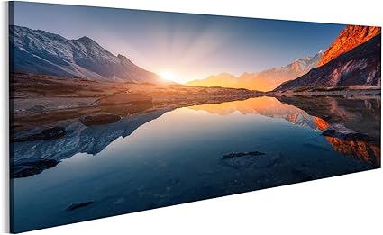 Islandburner Quadro Moderno Bellissimo Paesaggio Con Alte Montagne Con Picchi Illuminati Pietre Nel Lago Di Montagna Riflessione Cielo Blu E Gial Stampa Superiore Ohg Pano It Amazon It Casa E Cucina