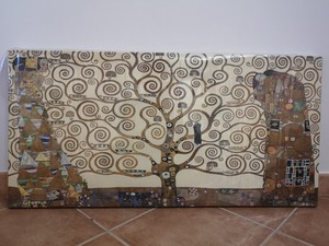 Quadro Albero Della Vita Klimt 120x60 Base Tessuto Legno Tek Moderno 953 Tk