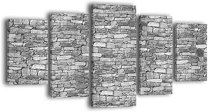 Quadro Su Tela Natura Muro Di Pietra Grigia Lw382 Murale Quadro Su Tela 5 Pezzi 210