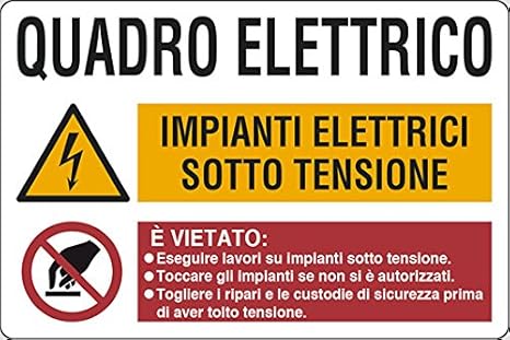 Cartello In Alluminio Bianco Adesivo Quadro Elettrico Impianti Elettrici Sotto Tensione E Vietato Cm 30x20 Amazon It Fai Da Te