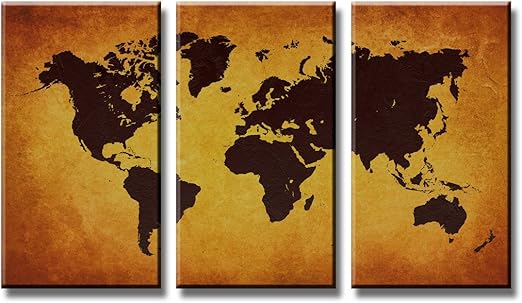 Visario Mappa Del Mondo Quadro Su Tela Tre Parti Murali Stampa D Arte Cornice In Legno E Metallo Per Essere Appeso Beige Vintage 120 X 80 X 1 0 Cm Amazon It Casa E Cucina