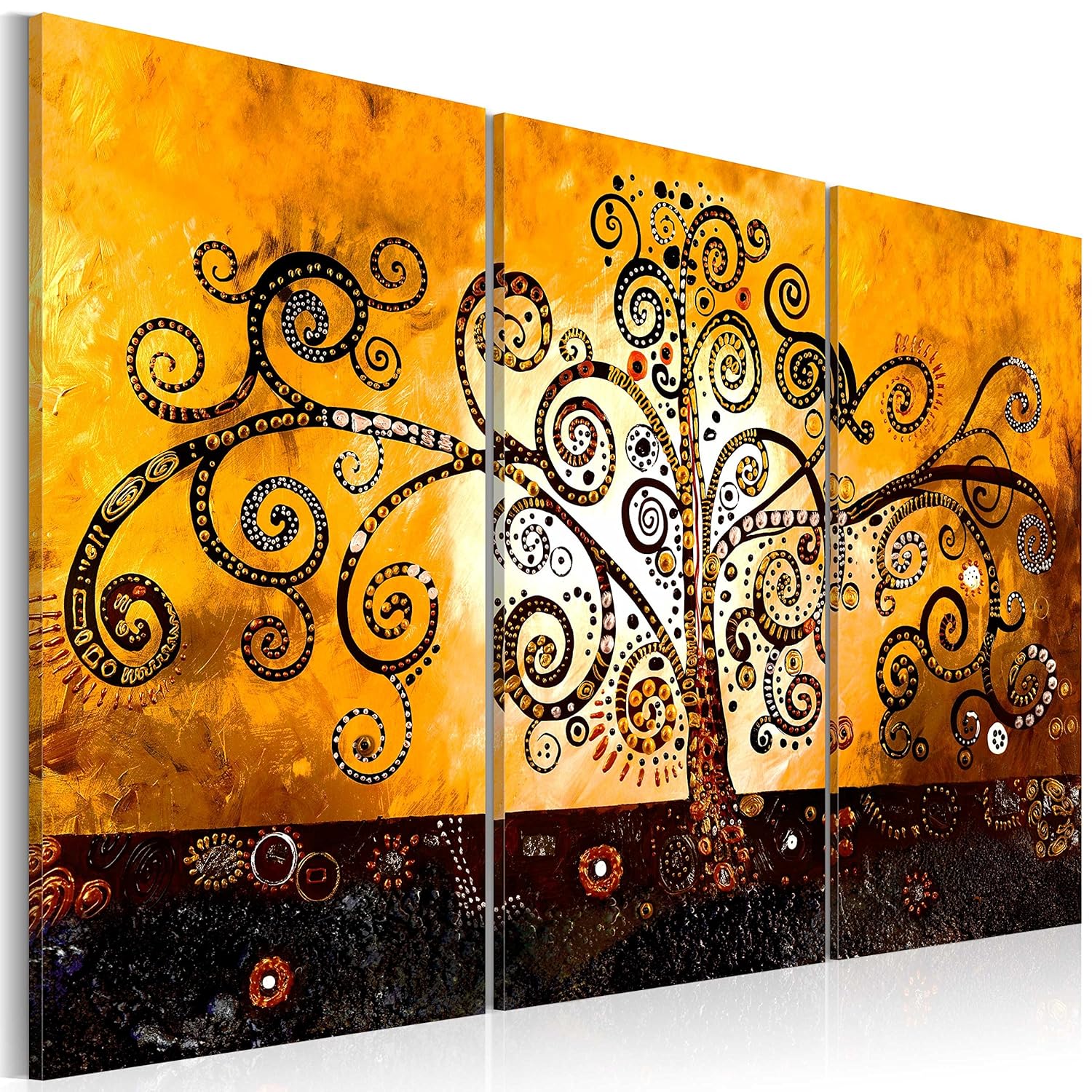 Albero Della Vita Quadro Dipinto Su Tela Trittico 3 Pannelli Bianco E Nero Klimt Ebay