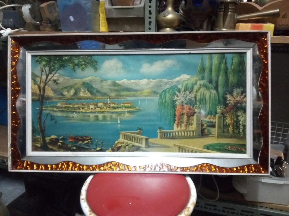 Lindo Grande Quadro Italiano Com Moldura Arte Deco Em Vidro E Espelho Caldas Da Rainha Nossa Senhora Do Populo Coto E Sao Gregorio Olx Portugal