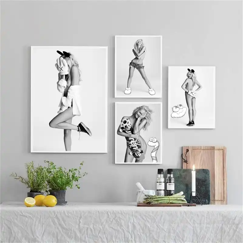 Modern Fashion Kaws Sexy Model Girl Canvas Printings Decorative Wall Art Pictures Poster Print For Bedroom Home Decor Painting Calligraphy Aliexpress