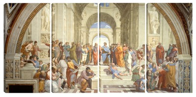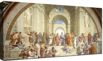 Quadro la scuola di atene. La scuola di atene è un affresco realizzato tra il 1509 e il 1511 dal pittore rinascimentale italiano raffaello sanzio ed è situato nella stanza della segnatura una delle quattro stanze vaticane poste all interno dei palazzi apostolici. Invece il quadro la scuola di atene realizzato in tecnica premiu print è una decorazione da muro adatta agli ambienti moderni. Ottima qualità della stampa permette di mantenere la naturalezza dei colori e per questa ragione il quadro la scuola di atene diventerà un interessante accento decorativo di ogni spazio. I quadri più importanti della collezione raffaello sanzio a forma delle riproduzioni su tela doneranno un pizzico di stile alla tua stanza.