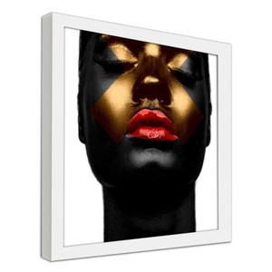 Feeby Quadro Con Cornice Bianca Pelle Nera E Labbra Rosse Niik