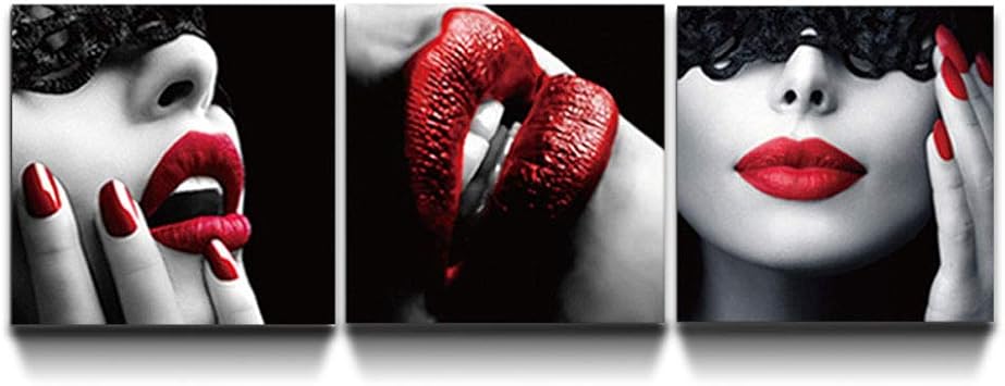Huizheng 3 Pezzi Donna Sexy Labbra Rosse Poster Quadri Su Tela Pittura Nordica Quadri Murali Per Soggiorno Arredamento Camera Da Letto Bellezza Arte 30x30 Cmx3 Senza Cornice Amazon It Casa E Cucina