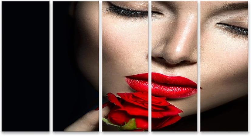 Islandburner Quadro Moderno Bella Donna Sexy Con Labbra Rosse Unghie E Fiore Rosa Stampa Superiore Npc 5p It Amazon It Casa E Cucina
