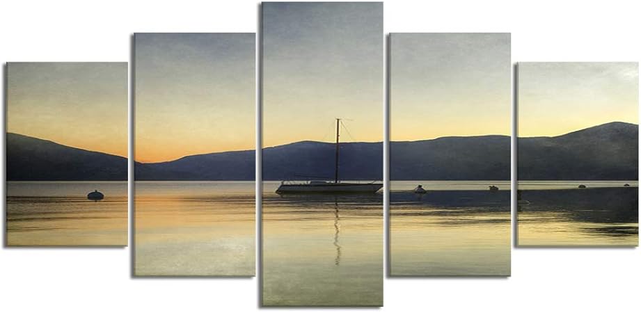 Youmeisu Quadro 5 Pezzi Barca Inverno Lago Maggiore Ascona Ticino Svizzera Tramonto Sole Sera Notte Montagne Alp Stampa Su Tela In Immagini Moderni Murale Fotografia Grafica Decorazione Amazon It Casa E Cucina