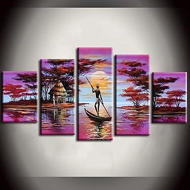 Eik Vernici Dipinta A Mano Pittura Ad Olio Delle Foreste Di Africa Lago Rosa Barca Paesaggio Con Set Quadro Teso Di 5 Amazon It Casa E Cucina