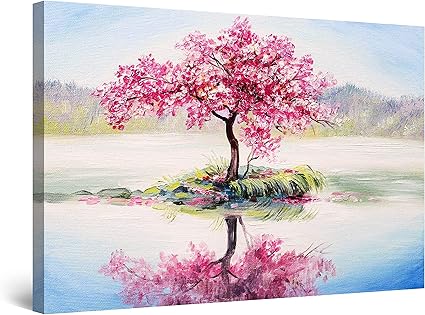 Startonight Quadro Su Tela Rosa Giapponese Albero E Lago Quadri Moderni Paesaggio Stampe Camere Da Letto 60 X 90 Cm Amazon It Casa E Cucina