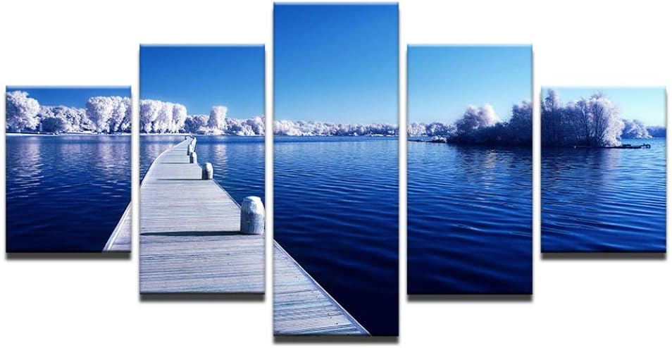 Amazon Com Woplmh Quadro Modulare Stampato Grande Tela Dipinto Per Camera Da Letto 5 Pannello Lago Paesaggio Soggiorno Parete Della Casa 30x40cmx2 30x60cmx2 30x80cmx1 Senza Cornice Posters Prints
