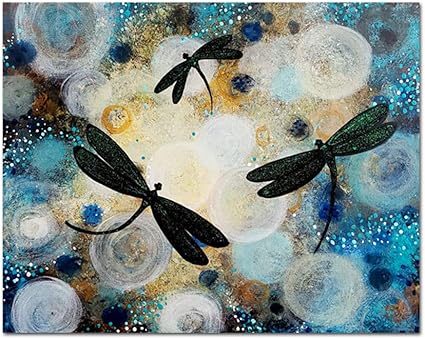 Himasmonkey 100 Pittura A Olio Su Tela Moderna Decorazione Da Parete Libellula Quadro Acrilico Dipinto A Mano Con Cornice In Legno 16 16 40 40cm Amazon It Casa E Cucina