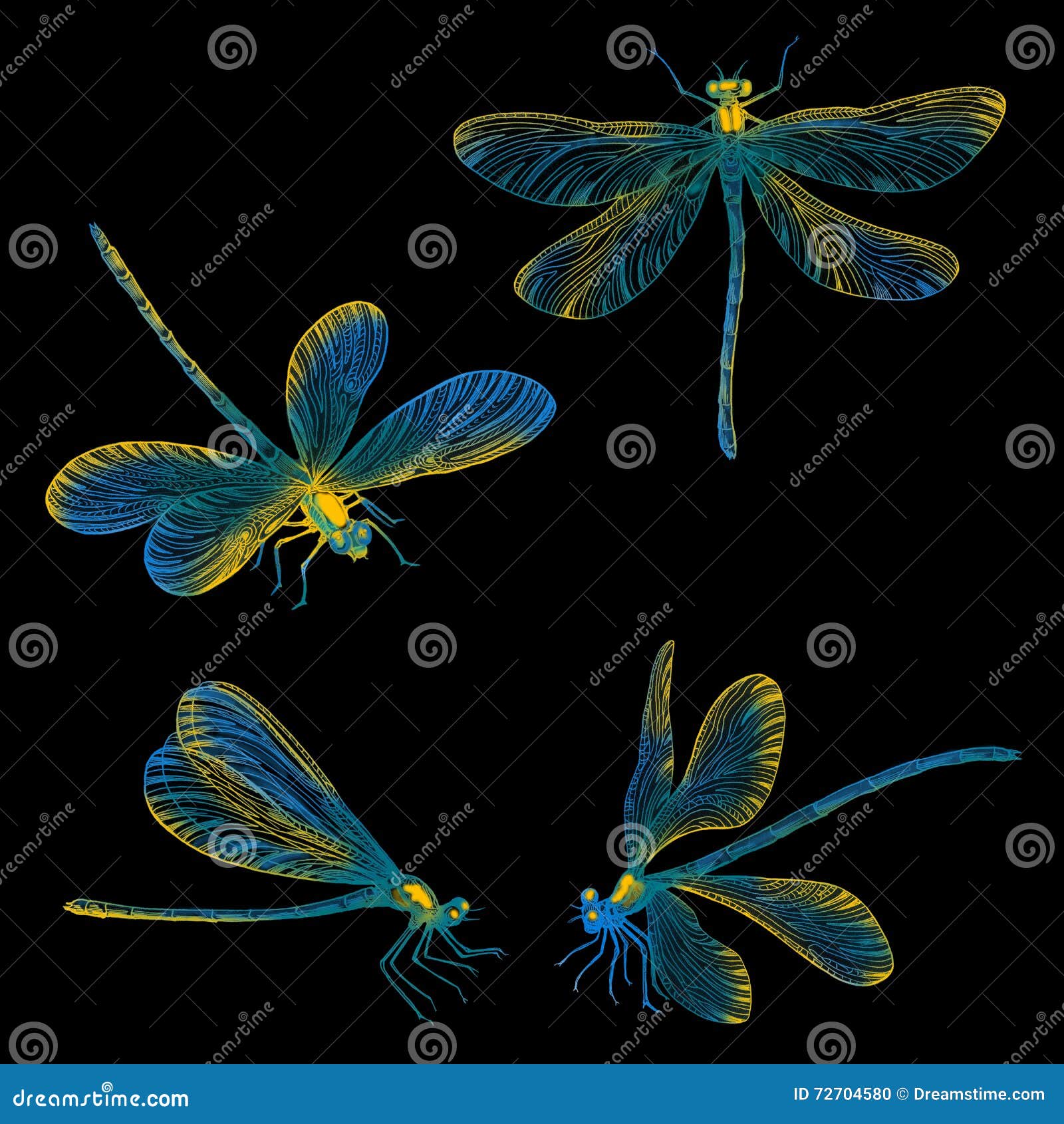 Libellule Disegnate A Mano Messe Illustrazione Di Stock Illustrazione Di Illustrazioni Biologia 72704580