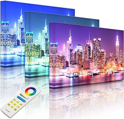 Quadro Pannello Luminoso A Luci Led C Telecomando Grattacieli Pintdecor Ebay