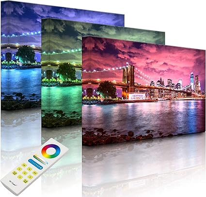 Quadro Pannello Luminoso A Luci Led C Telecomando Luci A New York Pintdecor Ebay