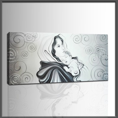 Quadro Moderno Dipinto Sacro Religioso Capezzale Madonna Con Bambino Argento Ebay