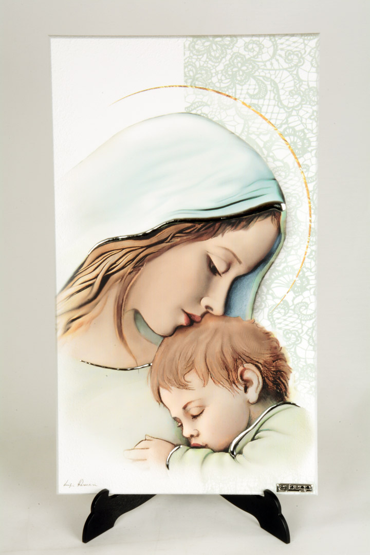Madonna Col Bambino Quadro Moderno In Argento Dimensioni Cm 20 X 15