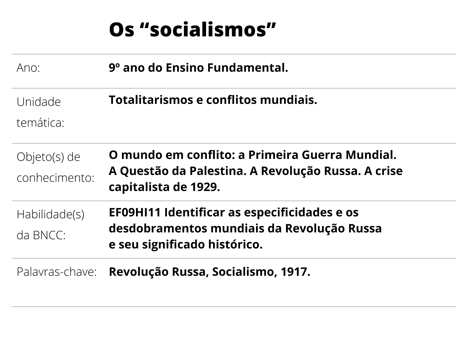Plano De Aula 9º Ano Historia Os Socialismos