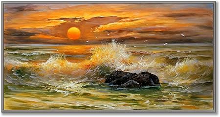 Mare In Tempesta Dipinto A Mano Pittura Olio Su Tela Mareggiata Impressionismo Mare Al Tramonto Amazon It Casa E Cucina