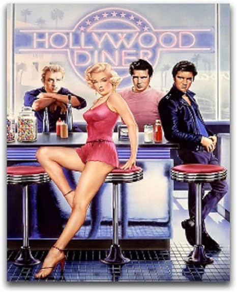 Coffee Shop Poster Elvis Presley Bogart Marilyn Monroe James Dean At Bar Elvis Presley James Dean Marilyn Monroe