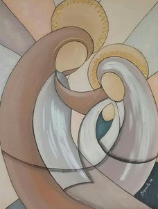Quadro Moderno Maternita E Sacra Famiglia Stilizzata In