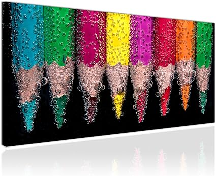 Topquadro Quadro Xxl Stampa Su Tela 100x50cm Matite Colorate Bolle Di Acqua Colori Contrasto Decorazioni Interni Immagine Panoramica Amazon It Casa E Cucina