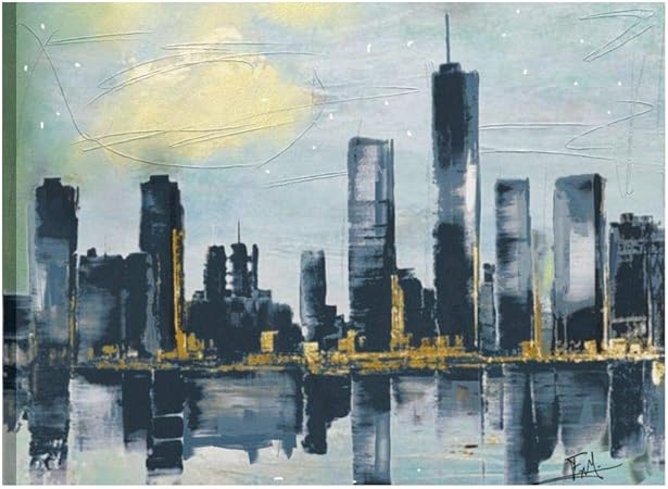Quadri Moderni Con Citta Dipinti A Mano Con Certificato Di Artigianalita Quadro Moderno Per Salone Salotto Ufficio Divano Quadri Urbani Alta Qualita Made In Italy Skyline New York Amazon It Casa E