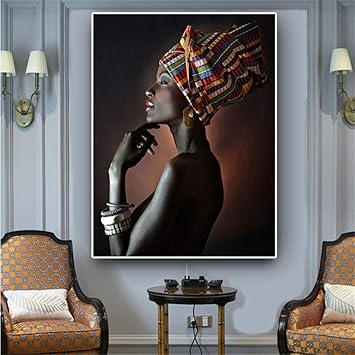 Danjiao Poster In Oro Nero Quadro Moderno Quadro Su Tela Bella Donna Africana Immagini Su Tela Stampe Su Tela Per Soggiorno Soggiorno 60x90cm Amazon It Fai Da Te