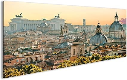 Luxhomedecor Quadro Panorama Roma 100x30 Cm Stampa Su Tela Con Telaio In Legno Arredamento Arte Arredo Moderno Tele