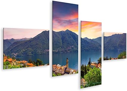 Islandburner Quadro Moderno Colorata Alba Estiva Nella Citta Di Carate Urio Sul Lago Di Como Alpi Italia Italia Lombardi Europa Quadri Stampa Su Tela Molto Bello E Colorato Qir Amazon It Casa E