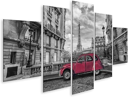 Quadro Moderno Torre Eiffel A Parigi E Rosso Auto Retro In Bianco E Nero Chiave Di Colore Bianco E Nero Quadri Stampa Su Tela Molto Bello E Colorato Qsq Amazon It Casa E