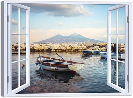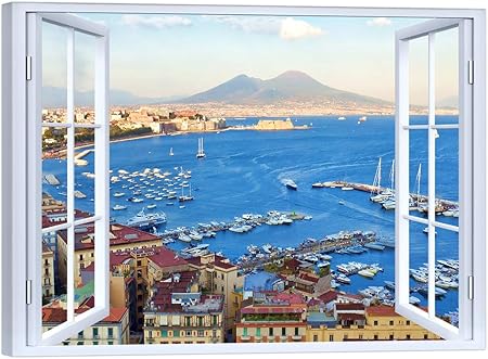 Luxhomedecor Quadro Finestra Napoli Vesuvio 100x75 Cm Stampa Su Tela Con Telaio In Legno Arredamento Arte Arredo Moderno Amazon It Casa E Cucina