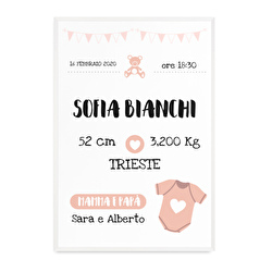 Create a beautiful memory of his first day of life with the name of the child and his birth dates. Fiocchi quadretti nascita e bimbo a bordo personalizzati. Data e ora di nascita peso e lunghezza e il nome questi sono i dati che verranno inseriti allinterno della cornice. Un idea regalo sempre molto molto apprezzata questo quadro da personalizzare con il nome del bimbo o della bimba racchiude il momento dell arrivo al mondo.