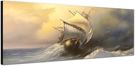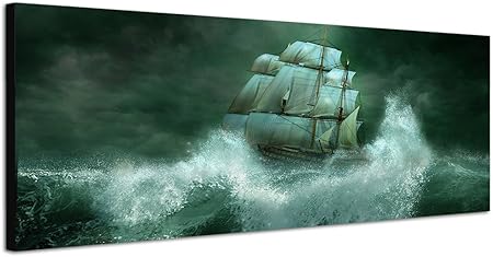 Quadro Da Parete Su Tela Come Panorama In 150 X 50 Cm Mare Onde Di Tempesta Nave A Vela Amazon It Casa E Cucina