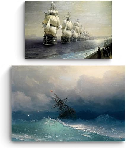 Startonight Quadro Su Tela Aivazovski Riproduzione Nave Nella Tempesta E Flotta Del Mar Nero Compra Uno E Prendi Due Amazon It Casa E Cucina