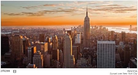 Quadro New York Panorama Tramonto Con Applicazione Di Cristalli Swarovski Originali Made In Italy Misura 160x80 Amazon It Casa E Cucina