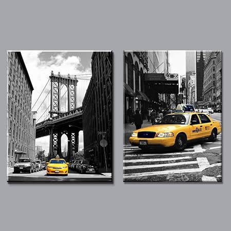 Modern Black And White Yellow Taxi Canvas Painting New York City Wall Art Prints Pictures Home Decor Living Room 16x24inx2 Unframed Amazon Ca Home Kitchen
