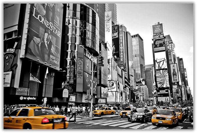 Murando Quadro New York 120x80 Cm 1 Pezzo Stampa Su Tela In Tnt Xxl Immagini Moderni Murale Fotografia Grafica Decorazione Da Parete Nyc City Citta Manhattan Taxi Nero Bianco Giallo D B 0173 B A