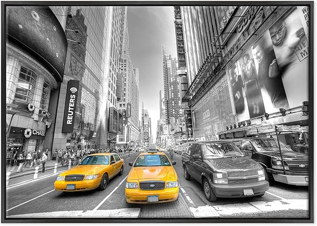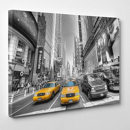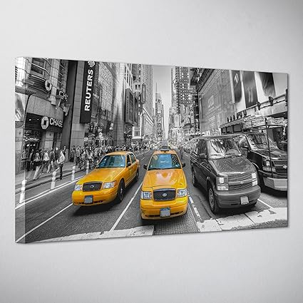 Quadro Su Tela Canvas Intelaiato Pronto Da Appendere Taxi Giallo Ny New York Bianco E Nero Fotografia Grattacieli Usa America 50x70cm Senza Cornice Cod 348 Amazon It Casa E Cucina