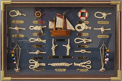 Vetrinetta Quadro Con Nodi E Oggetti Marinari In Lingua Inglese Il Vascello Arredi Ed Accessori Stile Vecchia Marina